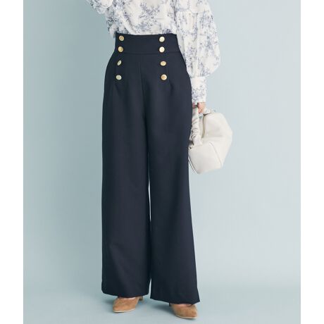 フロントのゴールド釦がアクセントになったハイウエストマリンパンツ。