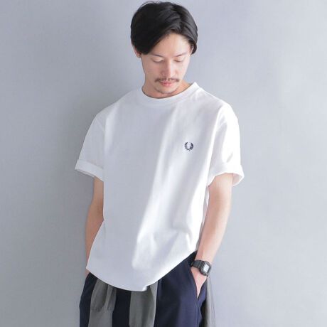 22SSバージョンにアップデート!FRED PERRY×SHIPSの鹿の子Tシャツ!\n\n左胸のローレルマーク刺繍が引き立つ極めてプレーンなビジュアルのクルーネックTシャツ。\n首元のティップラインと胸元の刺繍をカラーリングを見直し、よりスタイリッシュに仕上げた別注Tシャツです。\n今シーズンもコットンをベースに機能糸SOLOTEX(R)を混紡したSHIPS別注の鹿の子Tシャツは、胸ポケットをあえて排除したスッキリとしたデザインとなっております。ドライタッチな鹿の子の生地にやわらかさや伸縮性などがプラスされ、暑いシーズンにふさわしいアイテムに仕上げた至極の一品です。\nポロシャツほどカチッとせず、Tシャツほどカジュアル過ぎない洗練されたデザインの一着は、複数枚持っておきたいアイテムです。\n\n【FRED PERRY】\n偉大な名テニスプレイヤー「フレデリック・ジョン・ペリー」が創設した「FRED PERRY」(フレッド・ペリー)。 超一流のテニスプレイヤーとして認められていただけでなく、同時にその洒落たスタイルからベストドレッサーとしても認められており、 引退後にはスウェットバンド(リストバンド)の開発を、彼の愛称フレッドペリーの名を入れてスタートさせ、次にシャツ製造を開始しました。 そして正式にウインブルドンから許可を得た今日にも継承される月桂樹のマークが誕生し、 1952年ロンドンで「フレッドペリースポーツウェア社」を設立させました。 1960年代には、襟にラインを入れたポロシャツが当時のロンドンストリートファッションの主役であった「モッズ」と呼ばれる若者達の間で大流行。 その流行は瞬く間に世界へと発信され、一躍「FRED PERRY」の名を有名にしました。\n\n【SOLOTEX(R)】\n帝人フロンティアが製造するストレッチ繊維です。ポリエステルを上回る形態安定性と、ポリウレタンを上回る柔らかさ、伸縮性・キックバック性を兼ね備えた繊維です。\n\n--------------------------------------------\n生地の厚み:中間\n伸縮性:有\n透け感:無\n水洗い:可\n--------------------------------------------\n【スタッフ着用コメント】\n《スタッ