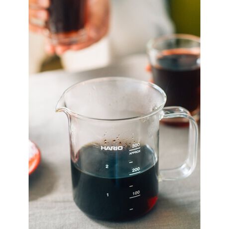 ■V60ドリッパーをそのまま乗せられる取っ手付きビーカー。コーヒー用サーバーとして、また目盛もあるため、お料理の計量用にもオススメ
