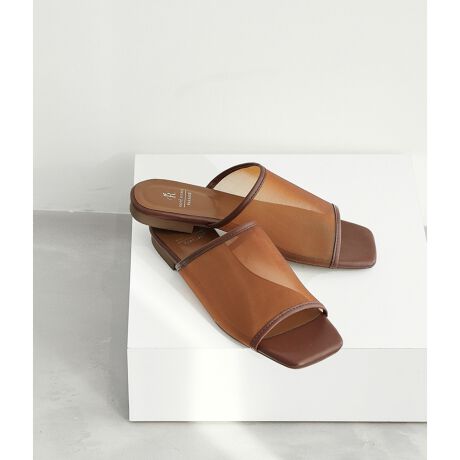 ・メンズライクなムードを纏ったサンダルを、チュール素材のアッパーで女性らしくアレンジ。