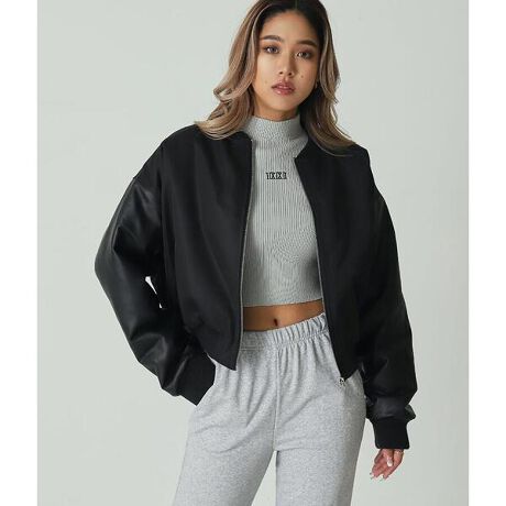 腕部分がフェイクレザーのCOOLなジャケットは防寒性バッチリ。