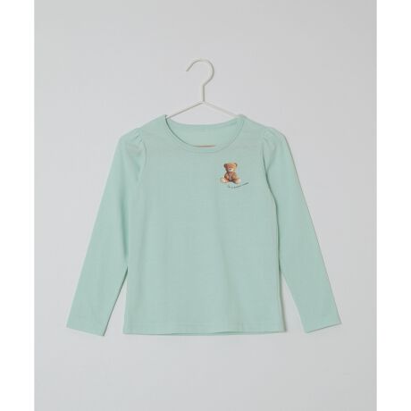 【KIDS】くまグラフィック袖ギャザーロングTシャツ