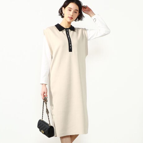 2WAYポロ衿ダンボールニットノースリーブワンピース
