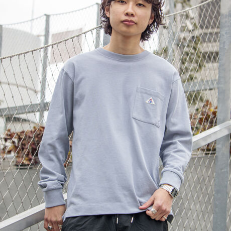 20/2 OE天竺生地を使ったポケット付き長袖Tシャツ。