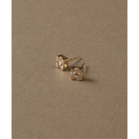 4ピースダイヤブロックモチーフピアス K10(両耳)