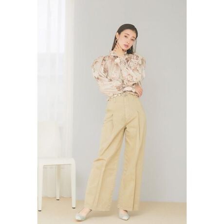 春らしいカラー展開が目を惹くカツラギ素材のパンツ。まるでデニムの様な加工感を再現した色味がPoint。BLUの色味だとカジュアルすぎてしまうけど、デニムを女性らしく取り入れたい、そんな方へお勧めのアイテムです。BEGはより女性らしい雰囲気を取り入れたい方へ、LIMEはトレンド感あるスタイリングをしたい方へ、それぞれ色味によって違った印象を演出します。前に深く取ったタックデザインが視覚的に縦に足を長く見せながら、リラックスした大人っぽい雰囲気に仕上げました。是非試して頂きたい一足です。