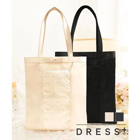 上品なサテンとレースの切り替えがポイントのたっぷり収納パーティーサブバッグ。