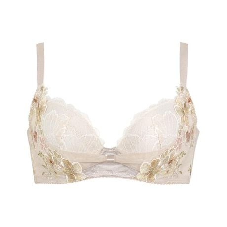 ・脇高設計による幅の広い脇布で背中から脇にかけてのハミ肉をキャッチし、しっかり収めることでデコルテをふっくらさせ、バストサイドのラインをすっきりととのえる・左右のバストを中央に寄せてキープしているので、動いても胸もとをキレイに保つ・(C・D)80・85サイズ、(E□G)カップ・・・パッドを取りはずした状態でのボリューム設定
