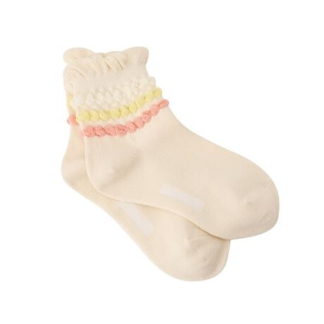 はき口がフリルになっていてポコポコのラインが3本入ったショート丈のソックスです。