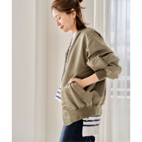 ふっくらとしたシルエットと、ほど良い光沢感としなやかさのある素材感で大人の女性も着やすいMA-1に。