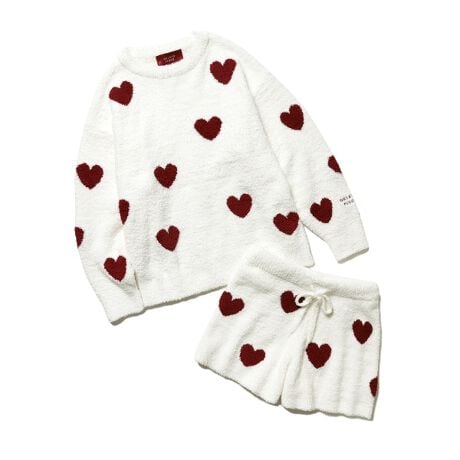 ふんわりライトな短毛が心地いいベビモコ素材で作った、オンラインショップ限定のスペシャルなセットアップ。ゆったりシンプルなプルオーバーに、ベーシックなショートパンツを組み合わせたキュートなアイテムです。ジャガードであしらった大きめのハート模様は、バレンタインのシーズンにマッチ。ボリューム感のある袖にロゴ刺繍も入ったこだわりのデザインです。同シリーズのjuniorサイズやソックスもラインナップしているので、親子ペアでもお楽しみいただけます。