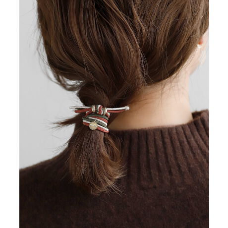 さりげなく艶めくメタルがアクセントになり、うしろ姿をこなれた雰囲気に仕上げてくれるヘアゴム。