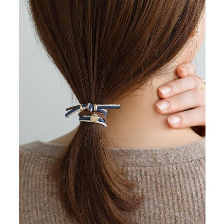 さりげなく艶めくメタルがアクセントになり、うしろ姿をこなれた雰囲気に仕上げてくれるヘアゴム。