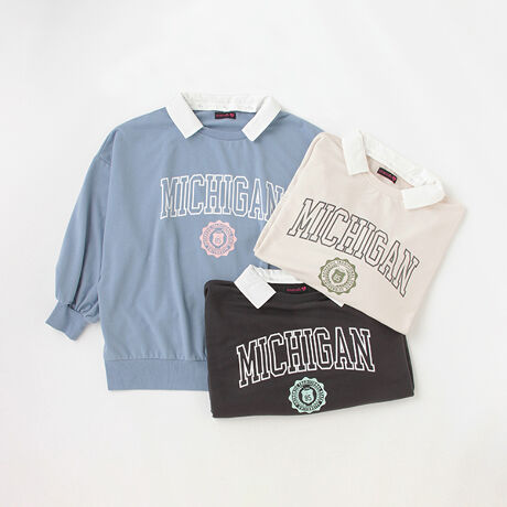 韓国スタイルにぴったりなカレッジロゴやエンブレムをデザインしたプルオーバーです。主張しすぎない衿はつけ外しでき、2パターンの着こなしが楽しめます。汗の吸い取りが良くなるミニ裏毛仕様で、着心地も良好。ゆとりのあるシルエットなので、ゆるピタなコーディネートがおすすめです。【透け感】透けない※アイボリーはやや透ける【生地の厚さ】薄い【伸縮性】あり【裏地】なし【ポケット】なし