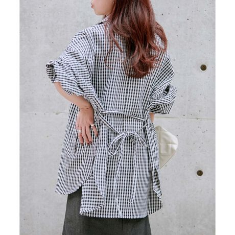 【一部店舗限定】ウエストリボン付きボリュームスリーブCPOシャツブルゾン