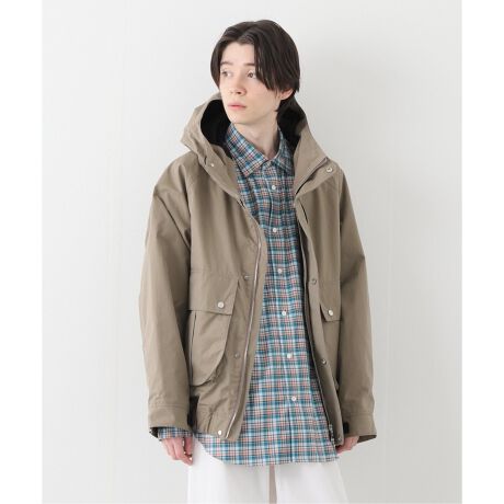 MARKAWAREのフード付きハンタージャケット。フロントはクラシカルな比翼仕立てで、外側がドットボタン、内側がダブルジップで開閉する仕様。身頃裏の左右に内ポケットを1箇所ずつ配しています。フード部分の首元にはドローコードが付属しております。腰周りには大きめのフラップポケットとハンドウォームポケットがデザインされています。裾にはゴムが入っており、丸みを帯びたシルエットに。袖先はマジックテープで調整可能。着用した際のシルエットは肩回りや身幅、袖周りにゆとりを持たせたリラックスシルエットです。