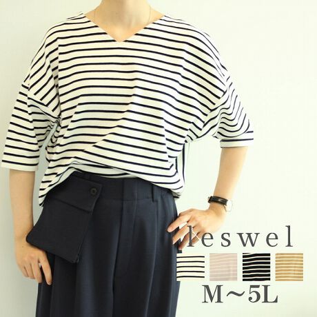 ボーダーにVネックでちょっとした女性らしさをプラスしました。