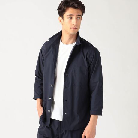 帝人フロンティアのオリジナル素材<ラッカン>を採用。キックバックの効いたストレッチ性とシワになりにくいドライなタッチ感、とにかく速乾性に優れた素材です。素材独特の光沢感と風合い、薄手ながら綺麗に仕上がる仕立ての良さも引き立てます。ゆとりのあるサイズ感に設定した新型シャツです。ドロップショルダー設定で、裾にかけて少しシェイプさせてシルエットを作った程好いサイズ感です。台衿と身返し一体型にしたショートレギュラーデザインで、オープンカラー風、立てても着れるニュートラルな設定にしています。