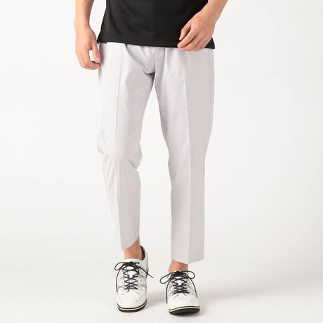 帝人フロンティアのオリジナル素材<ラッカン>を採用。キックバックの効いたストレッチ性とシワになりにくいドライなタッチ感、とにかく速乾性に優れた素材です。素材独特の光沢感と風合い、薄手ながら綺麗に仕上がる仕立ての良さも引き立てます。くるぶし丈のスラックス風イージーパンツです。素材感を活かし、腰回りからヒップにかけてゆとりを出し、裾口にかけてテーパード感を強くしたシャープなシルエットに仕上ています。