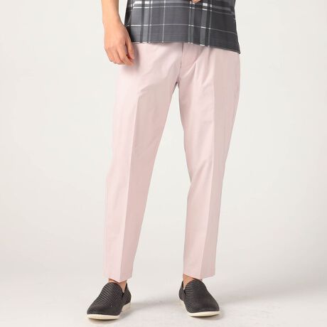 帝人フロンティアのオリジナル素材<ラッカン>を採用。キックバックの効いたストレッチ性とシワになりにくいドライなタッチ感、とにかく速乾性に優れた素材です。素材独特の光沢感と風合い、薄手ながら綺麗に仕上がる仕立ての良さも引き立てます。くるぶし丈のスラックス風イージーパンツです。素材感を活かし、腰回りからヒップにかけてゆとりを出し、裾口にかけてテーパード感を強くしたシャープなシルエットに仕上ています。