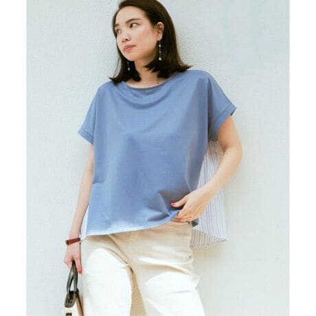 ゆったりとした身幅感で前後差が付いている、チュニック丈の異素材ドッキングデザイン。