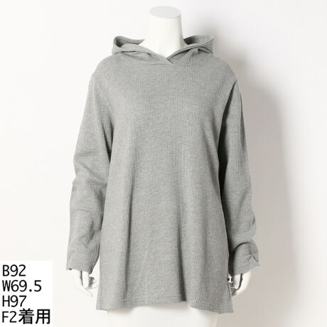 【大きいサイズ】ワッフルパーカーサーマルプルオーバー(日本製)