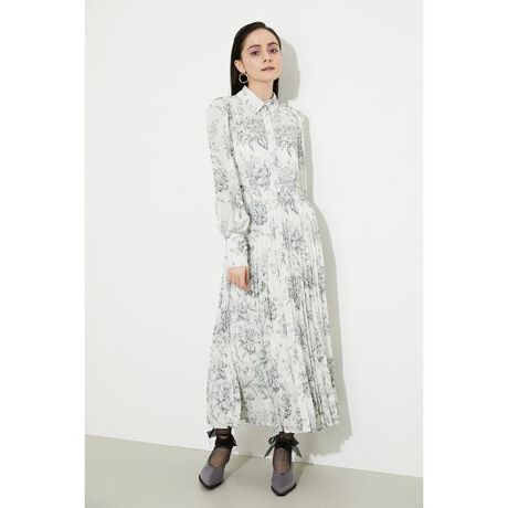 繊細な花柄が上品なシャツワンピース。バルーンティアードJ/WフレアSK(110FS631-0420)と同柄の展開になります。華奢なタッチの「トワルド・ジュイ」をイメージした柄にする事で、大人っぽさと女性らしさを大事にした印象に仕上げました。ウエストから自然に広がるプリーツのデザインが動く度にふんわりと広がり、また軽い楊柳調のシフォン素材で長い期間着られる素材感がPointです。ひざ下まで隠れるくらいの同色インナーキャミソール付きです。IVOYは女性らしい印象に、PURはお洒落な印象に、BLKは大人っぽい印象に、カラーによって全く違う印象に仕上げているので、是非自分に合ったカラーを見つけて欲しい1着です。