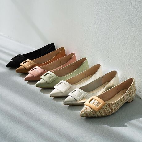 人気のバックルフラットパンプス。
