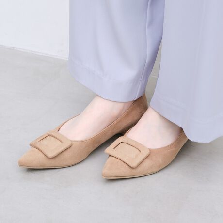 人気のバックルフラットパンプス。