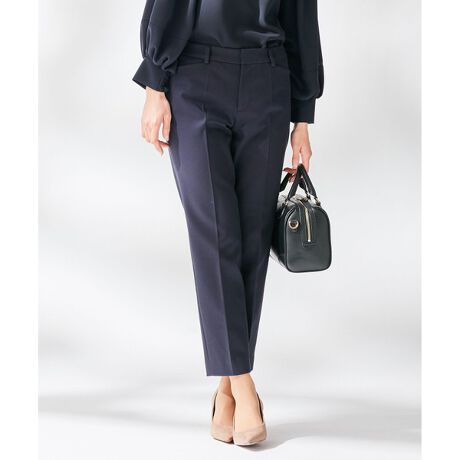 2021AW ◆セットアップ対応◆ イージーな穿き心地&すっきりシルエットのストレッチテーパードパンツ ■デザイン タックをなくすことによって、腰回りのもたつきをなくし、すっきりとしたシルエットに仕上げたテーパードパンツ。後ろゴム仕様なので長時間の着用もストレスフリーです。同素材のジャケットと合わせてスーツスタイルとしてはもちろん、シャツやブラウスと合わせて単品使いでも活躍するアイテムです。 ■素材 コットンとストレッチ性のあるポリエステルで編み上げ、生地巾を追い込むことでストレッチバックに優れている布帛見えジャージー素材です。また、仕上げにシルケット+バイオ加工をすることで綺麗過ぎず、こなれた表情があります。 ■セットアップ&同素材アイテム テーラードジャケット(品番:JKWXIZ0208) カラーレスジャケット(品番:JKWXIZ0209) スカート(品番:SKWXIZ0208)