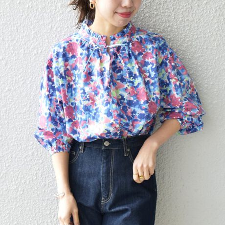 SHIPS any:〈ウォッシャブル〉Longchamp フラワー プリント フリル ブラウス