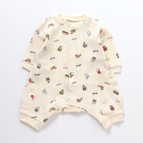 BREEZE(ブリーズ)のカバーオール・ロンパース「Boy’s ジャンクフード柄カバーオール」は、手頃な価格とアメカジテイストを取り入れた大人顔負けのデザインが人気!出産祝いにもどうぞ!