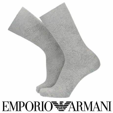 EMPORIO ARMANI メンズ EAロゴ総柄 クルーソックス 02342340