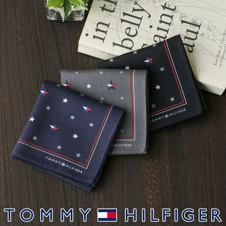 TOMMY HILFIGER メンズ 綿100% 星×フラッグロゴ総柄 ハンカチ 02582158
