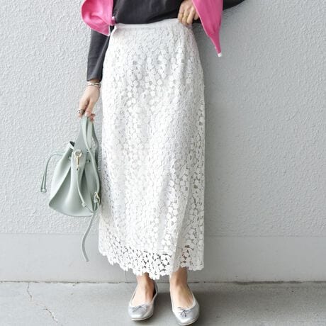 スズランから着想を得た花柄レースが上品なストレートスカート。