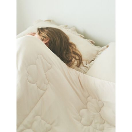 ふわふわ・もちもちのマシュマロのような風合いが人気のキルトケットに、可愛らしいベア柄が仲間入りしました。スムース生地にキルティングとベアのシルエットは、キッズ受けも良さそう。いつものベッドルームにほっこり安らぎを与えてくれます。インテリアとして取り入れやすいベージュ、オフホワイトの2色でご用意しました。