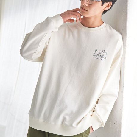 定番人気のコーエンベア柄は勿論、西海岸をイメージしてイラストレーターの金安 亮が描いたゆるいタッチのイラストが左胸にプリントされたトレーナーです。
