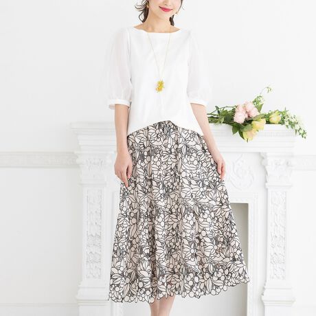 繊細なサクランボの刺繍が上品なカットワークレースのフレアスカート
