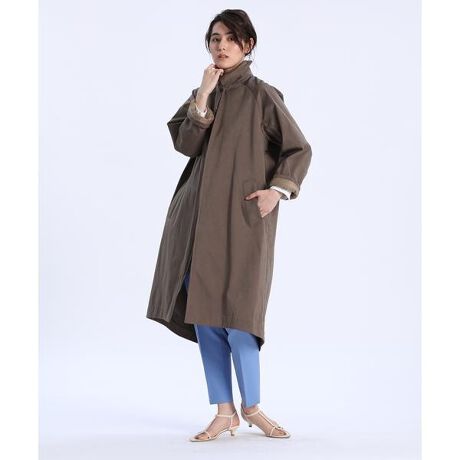 メンズライクなトレンチコートをベースに、スポーティな雰囲気にアレンジしたロングコート。思い切ったワイドなシルエットとラグランスリーブ、後ろ裾をカーブさせることでさっと着るだけで動きのあるシルエットをつくります。ハリやコシ、形状記憶感のある生地はナチュラルな表面感と独特のピーチスキンで高級感のあるルックスも魅力に。羽織るだけで旬のバランスが決まる、デイリーに取り入れたいロングコートです。・裏地あり(背裏)・ポケット付き【9号】着丈:115cm■サンプル撮影商品■こちらの商品はサンプルでの撮影となっております。実際の商品とは、サイズや色味、素材、デザイン等の仕様が若干変更になる場合がございます。