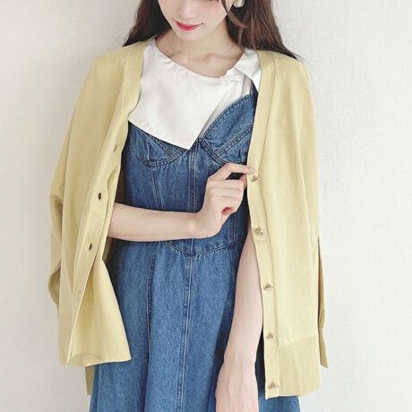 ヴィンテージライクなローズ釦がほんのりクラシカルなアクセントに。