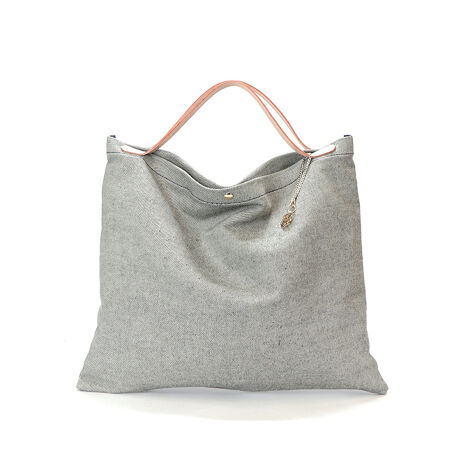 持ち手部分に使用した本革素材を使用。本体にはデニム素材を使用した爽やかな印象。