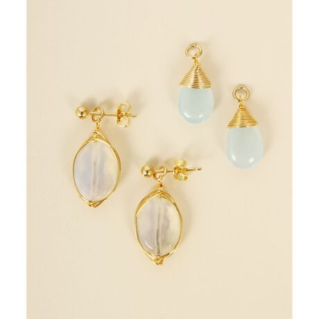 ワイスチャームの【着せ替えピアスチャームセット】天然石2粒ムーンストーン×サックスジェイドピアス。