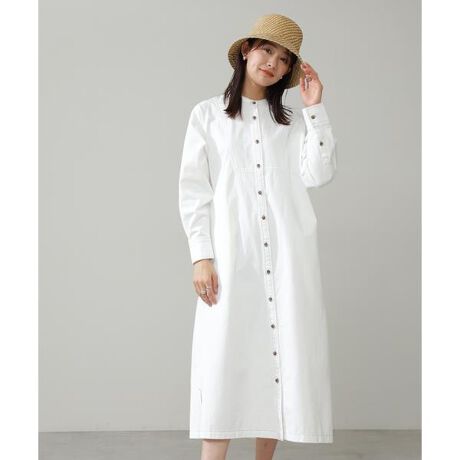 大人かわいいカジュアルスタイルを叶えるシャツワンピース。前立てのヨーク切り替えでウエスト位置を高く見せ、縦長シルエットを際立たせたデザインです。一枚で着用しやすいリラックスシルエット、裾脇のスリットで足元に抜け感をだしています。サンダルやバッグなどの取り入れ方を自由に楽しめるところも魅力です。※こちらの商品は水や雨に濡れたり、汗による湿気、乾燥状態での摩擦により、薄い色の衣服などに色移りする可能性があります。予めご了承いただき、ご使用の際にはご注意くださいますようお願い致します。※この商品は、素材の特性上激しい運動や極度な力が加わると、縫い目が開いたり目寄れ(織り糸が滑り、縫目が開く)する性質を持っています。ご着用の際はご注意ください。