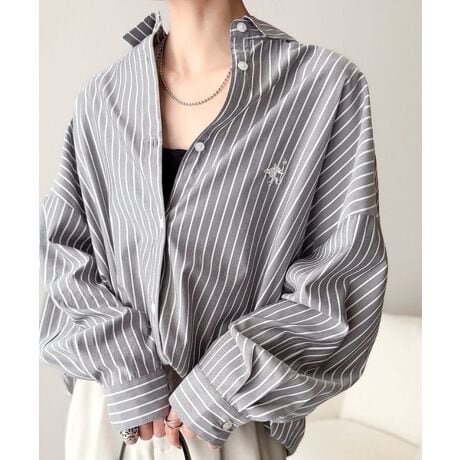ワンポイントレトロ刺繍が際立つ、大人のストライプシャツ。