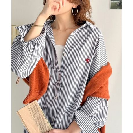 ワンポイントレトロ刺繍が際立つ、大人のストライプシャツ。