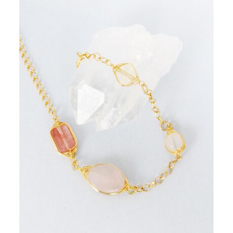 ワイスチャームの【アシンメトリーアクセ】K14GF ピンク4粒天然石ブレスレット。