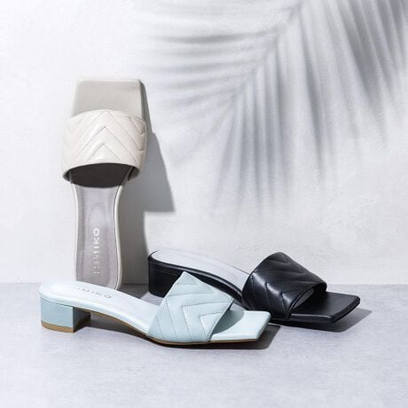 大人な幾何学模様◇【撥水】キルティングレザーミュールサンダル/621206