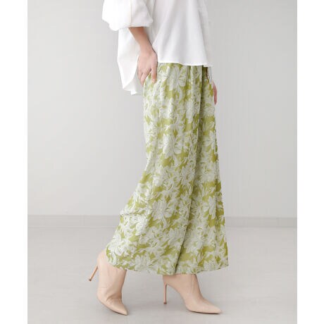ボタニカルモチーフのジャガード生地で作られた女性らしさが香るパンツです。