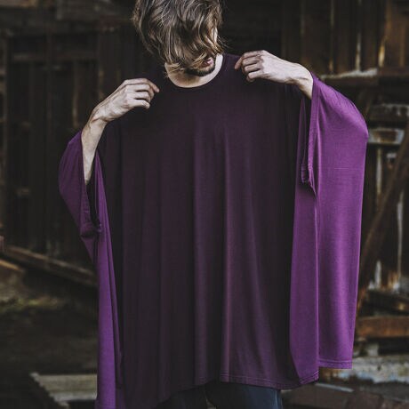 ショルダーラインを極端に落とす事でセンターよりもサイドの着丈が長くなるラウンドシルエットが特徴の一枚。