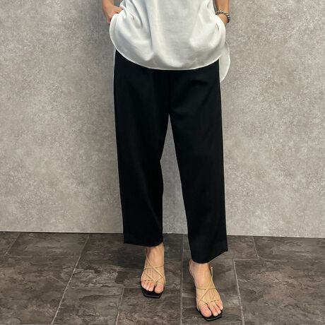 センタープレス入りのテーパードシルエットパンツ。